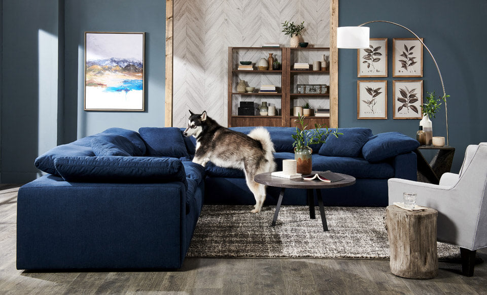 If it is oversized and square-shaped, such as the Watson Coffee Table, it is treated as a grid, so focus on styling each quadrant. This makes styling the table more attainable and organized. Follow the rule of threes for visual harmony by grouping items in three’s the different quadrants. Or, if the coffee table is rectangular, such as the Izaac Coffee Table, divide the surface into three separate sections.