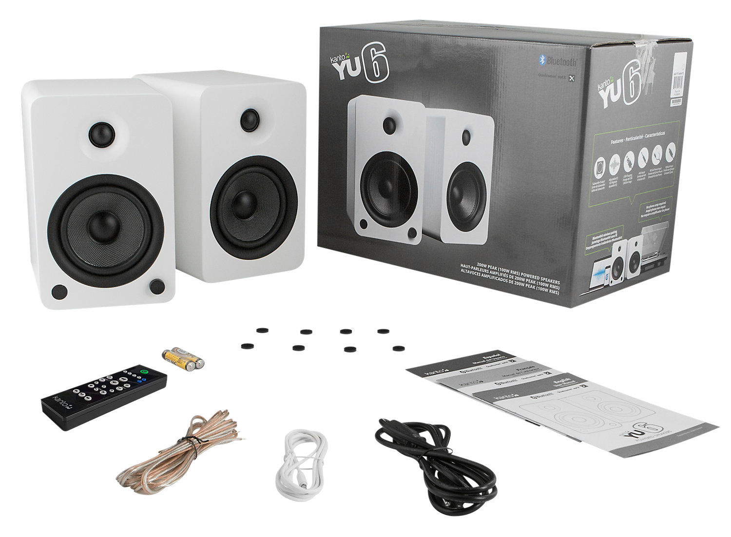 Satisfy your craving for powerful, full-impact sound with Kanto’s YU6 powered Bluetooth® speakers. Armed with formidable Class D amplifiers pumping out 200W peak power, these cleanly designed bookshelf speakers will let you really crank it up to 11. 5.25” Kevlar® drivers and 1” silk dome tweeters inject detailed sound into every square inch of living space, evoking emotions that can only be expressed with an ear-to-ear grin. A built-in phono preamp makes it easy to spin your favourite tunes, while Bluetooth connectivity lets you keep the party going from the palm of your hand.