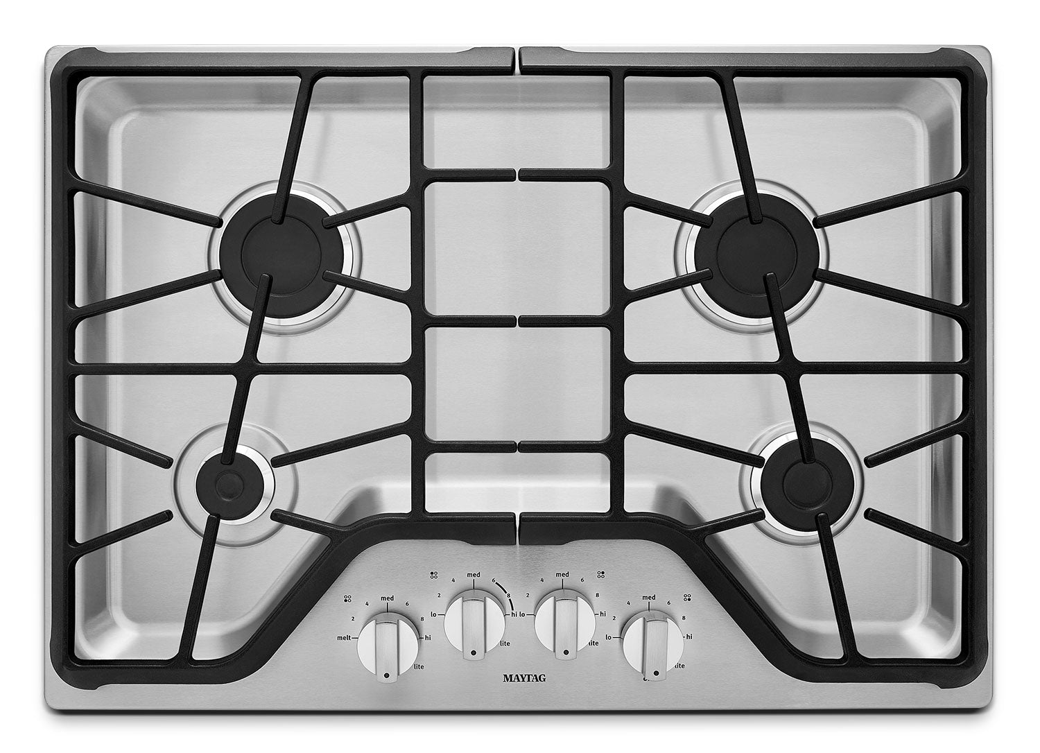 Simmer succulent sauces and brown beautiful beef steaks with this magnificent Maytag four-burner gas cooktop. Get your chef on thanks to a 15,000 BTU Power™ burner, which provides enough heat to add rich colour and flavour to your meals. Meanwhile, a low-heat simmer burner ensures sauces and delicate desserts won't burn. Heavy-duty continuous cast iron grates make it easy to slide heavy pots and pans around, while the DuraClean™ grate coating and sealed surface burners make cleaning a breeze.
