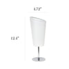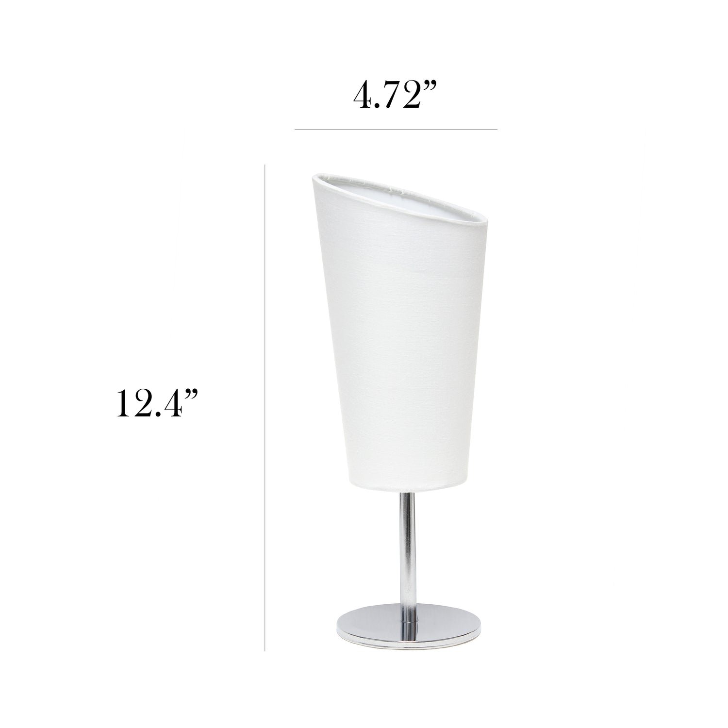 A lovely, inexpensive, and practical table lamp to meet your basic fashion lighting needs. This mini lamp features a chrome base and fabric shade. Perfect for living room, bedroom, office, kids room, or college dorm!