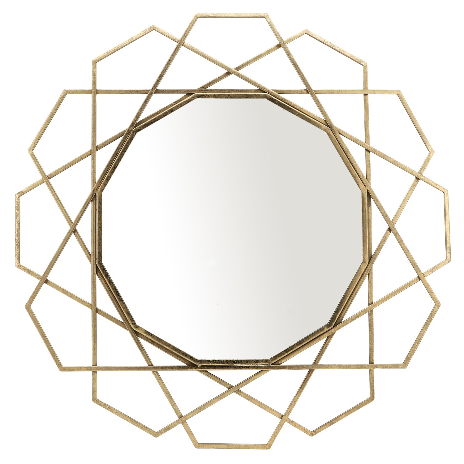 Instantly elevate your space with this stunning gold mirror. Featuring a unique design that instantly catches the eye, this wall-mounted accent will be a show-stopper in any room. Dare to be bold and make a statement with this geometric mirror.