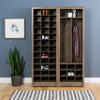 Simply and stylishly organize up to 36 pairs of shoes with the Space-Saving Shoe Storage Cabinet by Prepac. Fit one cabinet in a narrow entryway or combine multiple pieces from the Space-Saving collection in a large mudroom to create a custom closet look at the fraction of the cost. This shoe organizer has 36 spacious cubbies that can be used to store shoes, hats, scarves, keys, mail and any other clutter that needs organizing.