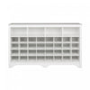 The 60 in. Shoe Cubby Console is a great option for organizing an entryway, mudroom or family room. There are 32 shoe cubbies to keep shoes from cluttering your floors and four large top compartments to stow books, bags and catch-all baskets. Not just for shoes, the cubbies can also be used for scarves, gloves and other items. This versatile console could also be repurposed to hold yarn, fabric and craft supplies. At 35 in. high, the large top surface is at an optimal height for setting down keys and other “on the go in. items, or as a spot for your favorite lamp and decorative items.