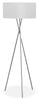 Elevate your space with this stunning 62"h tripod floor lamp in sleek nickel metal with an elegant grey fabric shade. This floor lamp features a tripod design for a modern touch, perfect for brightening up any room and creating a warm ambiance. The 3-way switch holds a single tri-bulb up to 150W (not included) allowing you to control the lighting to your desired level, while the decorative drum fabric shade illuminates the space with style. Quick and easy to assemble, this contemporary floor lamp includes a 2-year limited warranty against any defects for your peace of mind. Add a touch of sophistication to your living room, bedroom, or office decor with this versatile and chic floor lamp with a grey shade that is sure to be a standout accent piece.