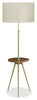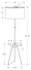 Bring some effortless ambiance to your living space with our sleek and modern 66"h tripod floor lamp in gold metal with a built-in walnut laminate shelf and topped with a drum-shaped linen ivory fabric shade. This contemporary lamp features a sophisticated tripod design with an adjustable neck to lower or raise the lamp to your needs, effortlessly brightening your living room, bedroom, or office space. Holding up to a 150W maximum tri-bulb (not included), the 3-way switch allows you to adjust the lighting to your desired level of brightness to illuminate your home in style. The built-in round-shelf table is handy for placing a drink or phone while seated. With only minor assembly required with the easy-to-follow illustrated instructions, this floor lamp includes a 2-year limited warranty against any defects for your peace of mind. This decorative and modern lighting accent is sure to make a statement in any room!