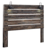 | Accent Details | Dark metal nail heads and open spaces between the slats give this headboard a down-home rustic look. |