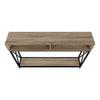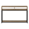 Adding plants, baskets, books or other decor items to the entryway, living room or bedroom? Featuring 2 open shelves, this console table is a stunning combination of taupe wood look tones with a sturdy X-design black metal frame to pair with any style. Also including a bottom panel for additional space, this accent table is your versatile storage solution at a perfect height and compact design to bring an edge to your small home, apartment or condo. It will look fabulous anywhere!