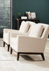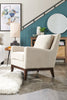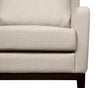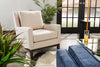 Savour your time at home with the comfort of this stylish beige Adel accent chair. Linen-look fabric envelops this piece for a charming and chic appeal. Both the seat and back cushion feature a mix of soft fibre fill and robust foam to ensure you stay snug while you binge-watch your favourite TV shows. While the upholstery provides a neutral base to emphasize however you want, the dark brown wood legs reach up to frame the chair's base with fashionable stability. Keep your living space looking modern and inviting with this elegantly designed Adel accent chair.