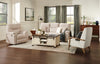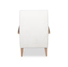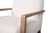 | Accent Details | Alabaster white upholstery blends well with the natural wood of the arms and legs. |