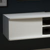 This wall-mounted media console will give you a splendid entertainment center in your living room or basement. The modern look will create that warm, refined ambiance everyone wants. The minimalist lines with rounded corners, along with the two sliding doors, will never go out of style. It’s attached to the wall but “floats” in the air, so it won’t take up any floor space and your room will look a little bigger. Put a TV right above it, and you’re ready for those movie nights! This console has two sliding doors that’ll cover whichever sections you choose, so you get a combination of closed and open storage. The six compartments are separated by a fixed shelf and two adjustable ones, so you can set the height of each row to fit your needs. Each shelf can hold up to 15 lbs., while the top surface can take up to 25 lbs. So this wall console can hold your AV equipment and DVD and video game collections. There’s a space for passing cords through in back, so your electronics can be plugged in discreetly.