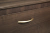 | Hardware | Sparkling, rectangular pewter pull handles line the front of the drawers. |