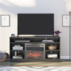 Dial in your perfect level of cozy, no matter the weather, with a 55" TV Stand with Electric Fireplace. The fireplace entertainment center has plenty of open storage. Six shelves with adjustable shelving keep your entertainment components organized with built-in wire management to keep cords tangle-free. The TV stand accommodates most 55" flat panel TVs with a maximum weight of 80 lbs. What makes it stand out is the integrated electric freestanding fireplace heater, bringing a natural warmth to your space. The lifelike LED flames, grate, and log set create a cozy atmosphere, while the tempered glass front enhances its contemporary look. Efficiently heating rooms up to 400 square feet, this fireplace heater is perfect for those cold nights. Enjoy the calming flames with or without heat, making it versatile for any season. The cool-touch front ensures safety for kids and pets. Assembly is straightforward with clearly labeled parts, and our customer support team is always ready to help. Plus, replacement fireplace inserts keep your furniture looking stunning for years. Made from engineered wood, this TV console with fireplace insert is both elegant and affordable.