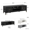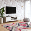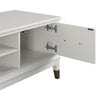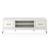 The CosmoLiving by Cosmopolitan Westerleigh TV Stand is a stylish pedestal for the focal point of the room. Available in crisp white or graphite grey, the Westerleigh is accented by trendy gold hardware with two doors and a fixed center shelf to store your top-notch equipment. This sturdy wooden stand holds TVs as heavy as 120 lbs. and up to 65" wide. Skip the electrical clutter and kick back after working nine to wine.