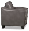 Get ready to enjoy chic comfort in your home with this Andi chair. Featuring button-tufting on the low-profile armrests and back cushions, this stylish design is a welcoming sight to behold. Breathable leather-look fabric makes this piece adaptable to any temperature while also adding a contemporary touch to this elegant piece. Finally, high-density foam is wrapped in thick fibre batting to ensure each cushion is plump and cozy whenever you need a breather.