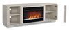 Your living space is sure to glisten with this Antoni electric fireplace TV stand. Its simple white design adds a touch of modern style to your home’s decor while a crystal ember firebox brings sparkling detail and is great for heating small spaces. The realistic flame effects, seven flame levels and multi-colour options make it a fireplace that’s ready to set the right mood for your movie nights. It also has a No Heat mode so you can enjoy it even on the warmest nights. Additionally, two glass cabinets with two shelves let you store all your remotes, movies and additional electronics.