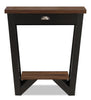 Decorate in style with this Arika console table. With its angular legs and two-tone design, this hall table is sure to make a chic statement. Zinc hardware and a dark walnut tabletop complement the black base, while a lower shelf gives you the space to add a little pizazz to your decor. An attractive zinc pull adorns the convenient storage drawer so you can easily access your wallet and keys in a jiff.