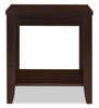 Add a clean and simple look to your home with this modern set of three occasional tables. Comprised of one rectangular coffee table and two matching square end tables, the pieces feature lower storage shelves for household organization. Finished in a gorgeous espresso brown colour, they’ll look great in rooms with similar tones or act as a decor balance in areas featuring lighter colouring. Stable and long-lasting, these occasional tables will refresh your home for many years to come.