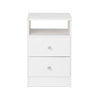 Have all you need close at hand with the Astrid 2-Drawer Nightstand with Crystal Knobs. Profiled drawer fronts and acrylic crystal knobs add a beautifying touch. Use on its own or pair it with other matching pieces from the Astrid Collection. The two drawers discreetly tuck away everything you want out of sight, while the open shelf is perfect for stashing your favorite books, blankets or knickknacks.