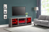 Complete your interior decor with this Aurora electric fireplace TV stand. Equipped with an electric fireplace that's great for heating small spaces, this piece is designed with a warm ash grey finish to provide an attractive aesthetic. The glass adjustable shelving on each side creates ample space to store your movies, books, video game consoles and more. Plus, the fireplace provides up to 1,000 square feet of heat for chilly winters and a no-heat mode to enjoy the ambiance of the dancing flame all year round. With an LED flame effect and your choice of four colours, it's a next-level entertainment experience.