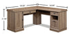 Country roots add beauty to this Barrister Lane L-shaped desk. Made from sturdy engineered wood, this desk easily supports your work setup. Grommet holes in the desktop keep cables from your monitor and computer tidy and untangled. A cabinet door hides your computer tower, while an additional adjustable shelf behind the door keeps your router tucked out of sight. File important papers in the bottom drawer, and keep your stationery essentials organized in the other two drawers. Designed to fit nicely into a corner, this L-shaped desk has plenty of space to make your office work for you.