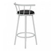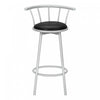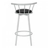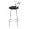 Introducing these stylish and comfortable set of 2 swivel barstools, a perfect addition to any home bar or kitchen counter. This 2-piece set is crafted from sturdy grey metal and cushioned seats upholstered in black leather look fabric, adding a contemporary element to your dining and entertainment space. At 37" H, these bar height stools feature a curved low back for support and bottom footrest for added comfort. Each bar stool is easy to assemble with full illustrated instructions included. Best of all, they come with a 2 year limited warranty against manufacturer's defects for worry-free use. Add it to your home and enjoy the fashionable style and ultimate comfort of these barstools.
