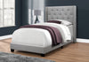 Give your bedroom a master appearance with this luxurious twin size bed frame with a wingback headboard upholstered in an elegant grey linen-look fabric. The classic contemporary style of this floor length headboard, outlined with chrome nail head trim down the sides and cushioned diamond tufting, gives the bed an understated flair. The clean lines of the upholstered sides and front frame along with the black solid wood legs, slightly angled at the front, adds stability to the whole bed frame. The box spring and mattress is not included and must be purchased separately. All parts and hardware for assembly are included.