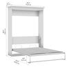 The Bestar Versatile 70W Queen Murphy Bed presents an ideal solution for creating a multipurpose room with traditional style. A dual piston system allows you to fold the queen size Murphy bed down quickly and smoothly so you can sleep comfortably at night while enjoying your home office, gym, or living room during the daytime. The mattress support features flexible slats that follow the curves of the body and absorb pressure for maximum comfort. The cabinet bed accommodates most queen size mattresses of your choosing and is designed to be used without a box spring. Antique Iron hardware and attractive crown moldings complement the elegant finish of your choice. The dual-mount wall bed mechanism attaches to both floor and wall structures for ease of assembly as well as maximum stability and durability. Minimum ceiling height is 93. 8 inches. The open bed extends 92 inches from the wall. Maximum weight capacity is 1000 pounds including the mattress. To avoid risk of injury, the bed must be installed to the wall and floor structure by a professional or qualified person. Two people are required for assembly. Installation requires attachment to wood studs or masonry, removal of the baseboard, and drilling into the floor. Necessary hardware is included. Do not use this product for children or pets under 50 pounds (22. 7 kg). This queen size wall bed is North American made with globally sourced materials and is backed by a 10 Year Warranty.