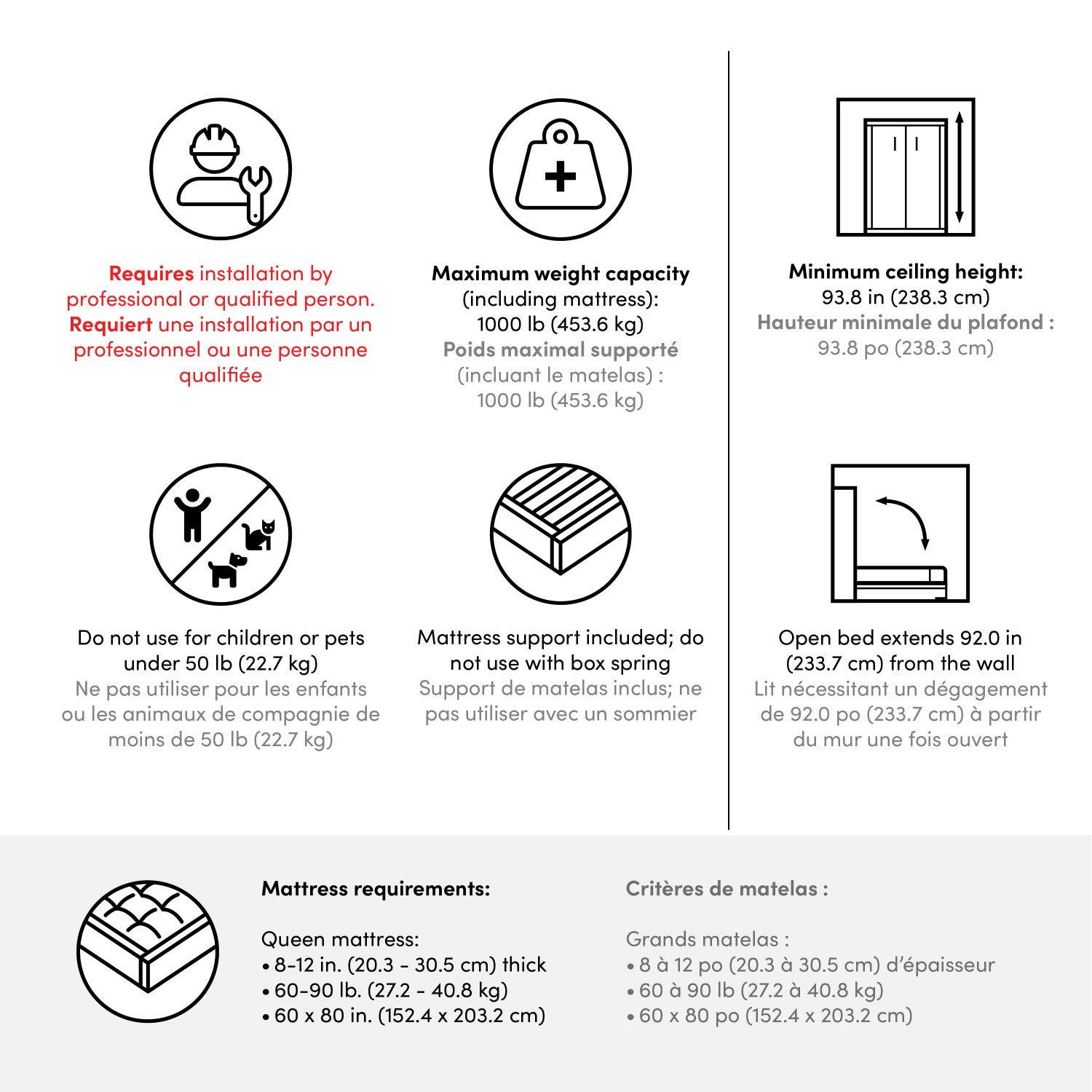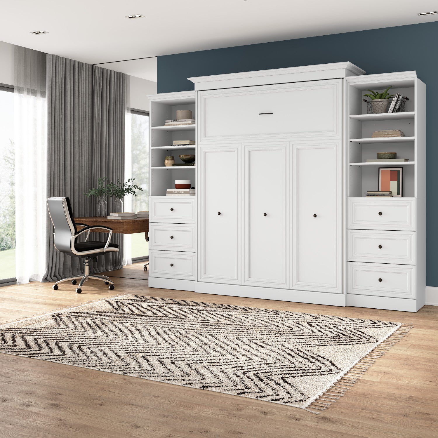 Bestar Versatile Queen Murphy Bed and Two Closet Organizers with Drawers (115 W) - White