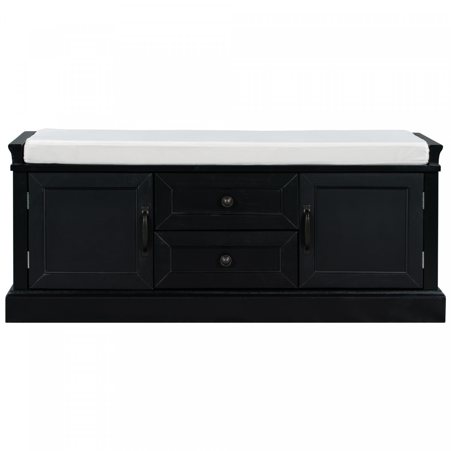 Boyce Solid Wood Storage Bench With 4-door Shoe Cabinet With Cushion - Black