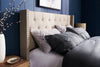 | Hardware | Chrome finishing on the button-tufted headboard adds a sparkling element to this bed. |