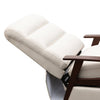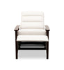 | Accent Details | Light upholstery beautifully contrasts the dark wood armrests and legs. |