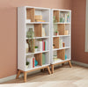 Relive the best of retro, mid-century decor with this beautiful Bremen bookcase. Featuring four tall shelves with staggered dividers, this piece lets you show off your best home accessories in many wondrous ways. The mix of light, two-tone colours keeps this piece out of plain territory, so the clean and modern look you've been cultivating won't be disturbed. And finally, four flared, solid wood legs elevate this piece to stylish new heights.