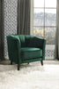 Add a glamorous pop of colour to your living space with this Brinley accent chair. Lavish velvet fabric envelops the furniture frame with a vibrant shade of green to complement your home decor. High-density foam is packed into the seating area, including the channel-stitched backrest, to provide comfort while you relax. At the same time, both the curved design and matching fabric piping make this piece refined enough to meet your style standards. Resting on robust wood legs, this accent chair brings equal parts elegance and enjoyment to your home.