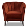 Add a glamorous pop of colour to your living space with this Brinley accent chair. Lavish velvet fabric envelops the furniture frame with a vivid shade of orange to complement your home decor. High-density foam is packed into the seating area, including the channel-stitched backrest, to provide comfort while you relax. At the same time, both the curved design and matching fabric piping make this piece refined enough to meet your style standards. Resting on robust wood legs, this accent chair brings equal parts elegance and enjoyment to your home.