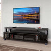 Give your big screen TV the home it deserves with this 75-inch-wide Bromley TV stand. The staggered shelf design is ideal for today's flat panel televisions, with an open shelf for placing a soundbar or gaming system, and a thinner top shelf for resting your TV at optimal viewing height. Below, sliding tempered glass doors showcase the four compartments ideally sized for housing receivers, Blu-ray players, movie collections – you name it. Altogether, this extra-wide design and sleek black finish make for a TV stand that will stand out.