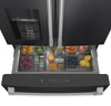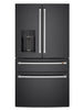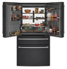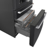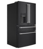 This stunning Café refrigerator is a masterpiece of design and convenience. An illuminated dispenser ensures you can always stay hydrated with filtered ice and water. Plus, a versatile middle drawer with flexible temperature range and glass dividers can be used to maximize fridge or freezer storage. This model features a matte black finish and brushed stainless handles. Customizing this elegant fridge is made simple – the handles are easily removed and replaced with finishing hardware, sold separately in brushed bronze, black and copper.
