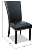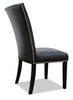 Add some contemporary elegance to your dinner tonight with this Cami black dining chair. A tall, gently curving seatback rises up to keep your posture perfect. Smooth, black faux leather adds a dark touch to your dining space, while supple memory foam makes your seat extra comfortable. A row of glittering silver nailheads line the edges of the seat and the back to add a touch of sparkle. Sink into the Cami and let dinnertime become the highlight of your day.