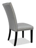 Add some contemporary elegance to your dinner tonight with this Cami grey dining chair. A tall, gently curving seatback rises up to keep your posture perfect. Smooth, grey faux leather adds a smoky touch to your dining space, while supple memory foam makes your seat extra comfortable. A row of glittering silver nailheads line the edges of the seat and the back to add a touch of sparkle. Sink into the Cami and let dinnertime become the highlight of your day.