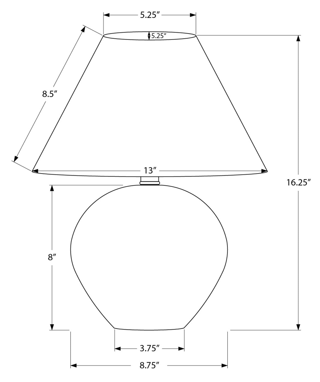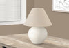 This stylish and fashionable globe-shaped 16"h table lamp with a cream ceramic base and topped with a subtly contrasting cream fabric shade, is the perfect accent to brighten any room. Featuring a 3-way switch holding a single bulb (not included) with a maximum outage of 60W/120V, allows you to customize the ambiance in your living room, home office, or bedroom. With a soft, contemporary appeal, place this versatile decorative lamp on a side or end table, or on your nightstand to create a warm and inviting atmosphere. Made with durable quality materials ensuring longevity, this lamp includes a 2-year limited warranty against any manufacturer's defects for a worry-free purchase.