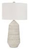 This beautiful, contemporary style 33"h table lamp with a cream ceramic textured base and ivory fabric shade, topped with a round ceramic finial is the perfect way to add some stylish and fashionable flair to any end side table, or nightstand in your bedroom, living room and home office. The convenient 3-way switch holds a single bulb with a maximum voltage of 100W/120V (not included), allowing you to adjust the lighting to suit the ambiance in a room. Made with high-quality materials, this decorative lamp includes a 2-year limited warranty against manufacturer's defects for your satisfaction. This accent lamp is sure to make a statement and brighten up any room with ease.