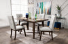 Turn an everyday meal into a lasting memory with this Chelsea grey-brown-brown five-piece rectangular dining package. Solid rubberwood capped with Mindi veneer provides a rich grey-brown finish that brings a touch of nature to your dining room. A broad tabletop is supported by tapered legs for a wide surface ready to hold all your favourite home-cooked dishes or takeout boxes. Soft grey polyester fabric covers a high, finely tufted chair back for a look that's both eye-catching and deliciously cozy. Settle into the Chelsea for your next big family meal and let dinnertime bliss begin.