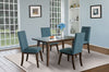 Turn an everyday meal into a lasting memory with this Chelsea five-piece dining package. Simple and sturdy, the rectangular table seats up to six while offering the structural support you demand from your key furniture pieces. The rubberwood table is capped with Mindi veneers, known for their elaborate grain patterns and ability to hold stain well. In this case, that natural beauty is emphasized by a walnut finish. Meanwhile, four overstuffed aqua chairs make taking a seat at this table a lasting treat.