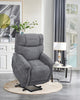 | Sold Separately | Matching Claire leather-look fabric power lift reclining chair in charcoal grey. |