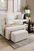 | Accent Details | Bright white fabric gives this piece a luxurious vibe that pairs wonderfully with the black furniture legs. |