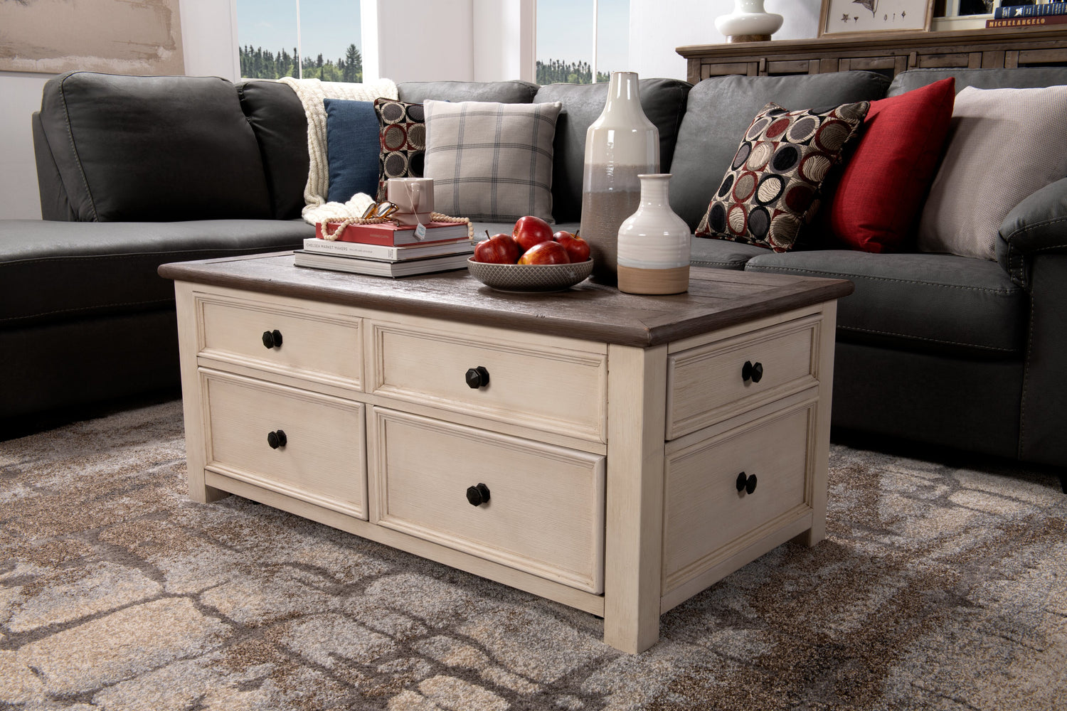 Colby 46" Rustic Lift Top Coffee Table with Storage and Casters - Two Tone Wood