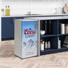 Coor Light compact 3.2 cu ft (90L) refrigerator is the ideal rec room, dorm, or man cave accessory. Eye-catching licensed graphics and a built-in can dispenser make it the perfect gift for your favorite beer-lover, and the built-in bottle opener means no scrambling when they want to enjoy a cold drink.