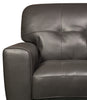 Get ready to relax and unwind on this grey-hued Curt sofa. This piece features button-tufted cushions and fabric piping on all of the seams for an elegantly modern take on retro furniture design. You'll love welcoming friends and family into your space and onto the genuine leather seating area. When you take a seat, you'll be instantly comforted by the high-density foam inside the cushions. With black-finished feet to provide support with style, this Curt sofa adds sophistication and charm to your home.