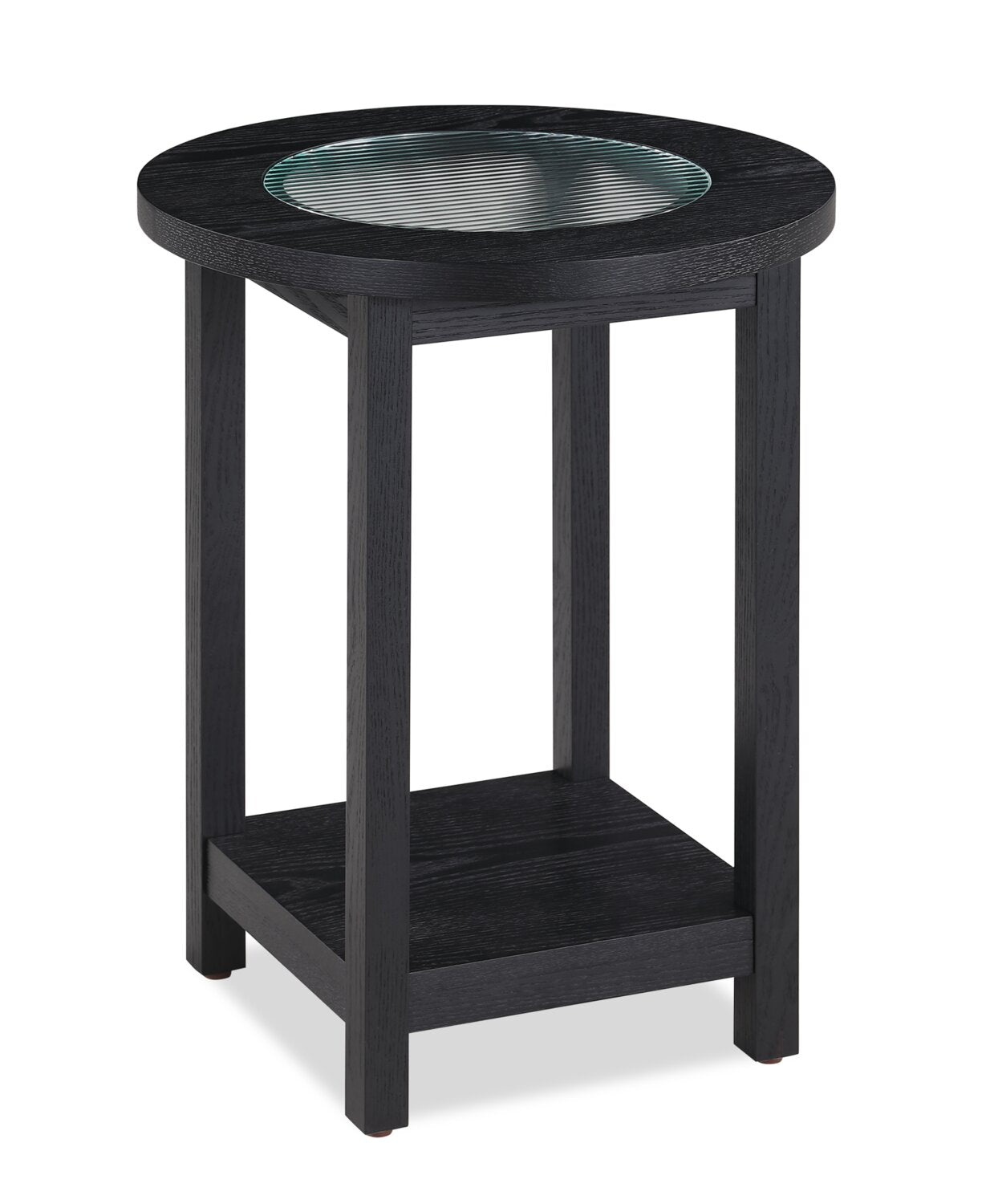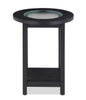 Savon 17.72" Modern Round Glass Top End Table with Shelf - Dark Walnut Wood and Chrome