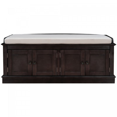 Daniel Solid Wood Storage Bench With 4-door Shoe Cabinet With Adjustable Shelves - Espresso