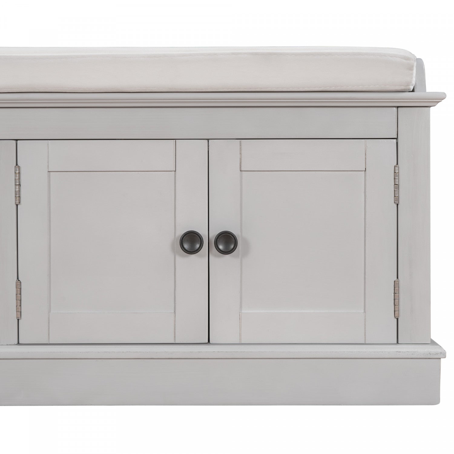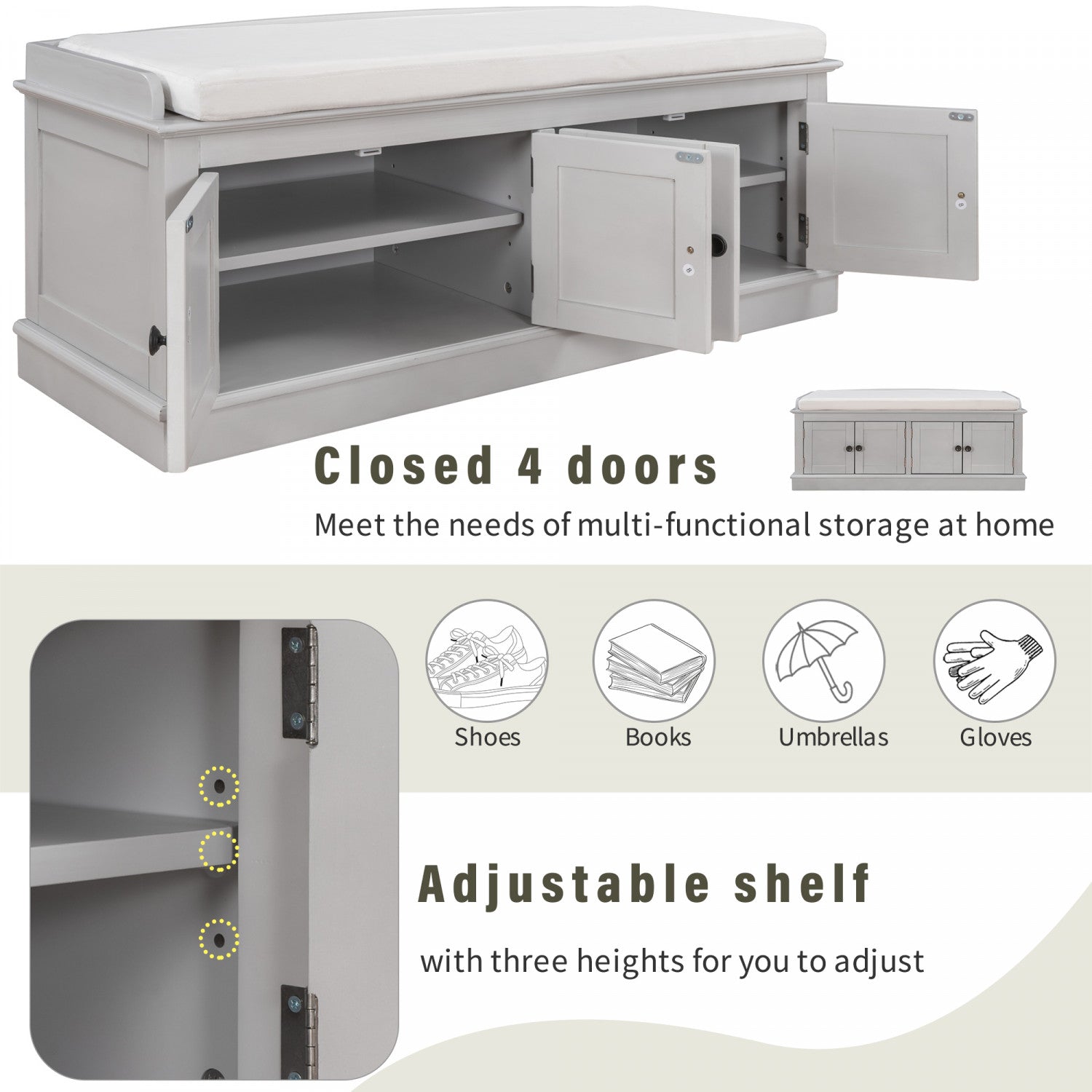 Daniel Solid Wood Storage Bench With 4-door Shoe Cabinet With Adjustable Shelves - Grey Wash